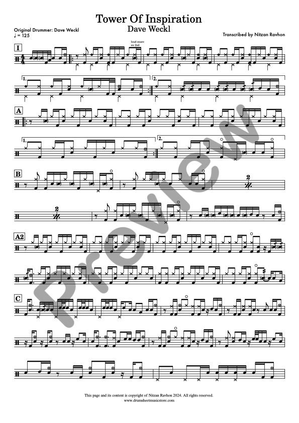 Note for note accurate drum sheet music of Dave Weckl – Tower Of Inspiration