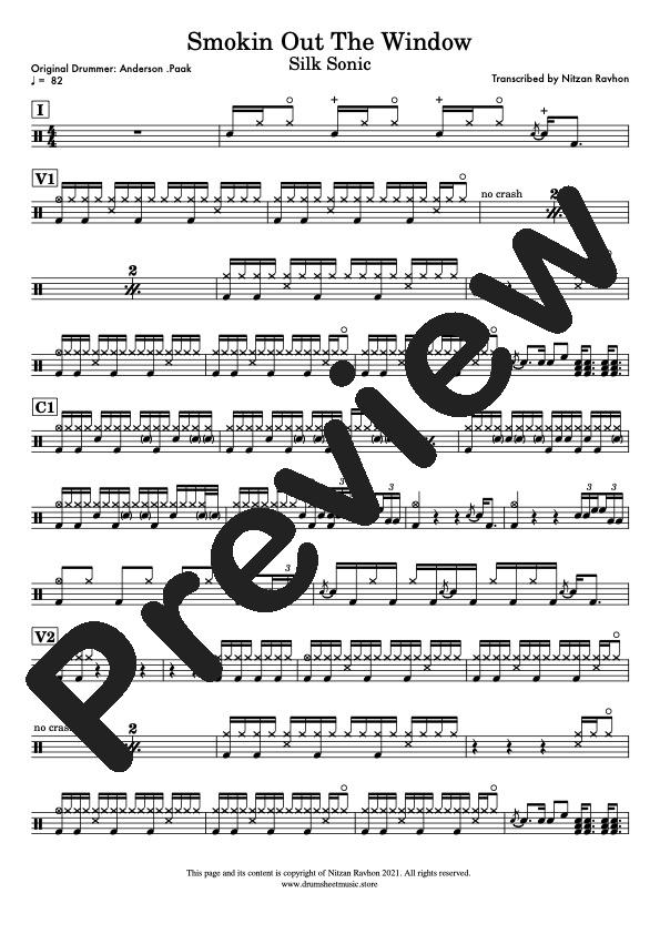 Note for note accurate drum sheet music of Silk Sonic – Smokin Out The Window